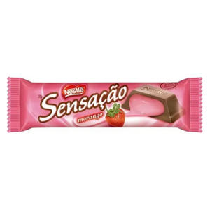 Picolé sabor morango com recheio sabor chantilly