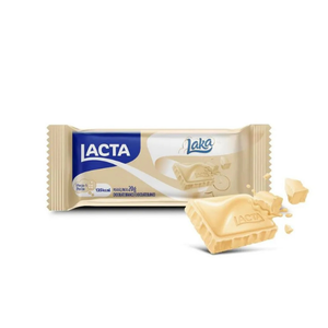 Picolé sabor baunilha com tablete de chocolate ao leite e cobertura de chocolate branco com crocantes